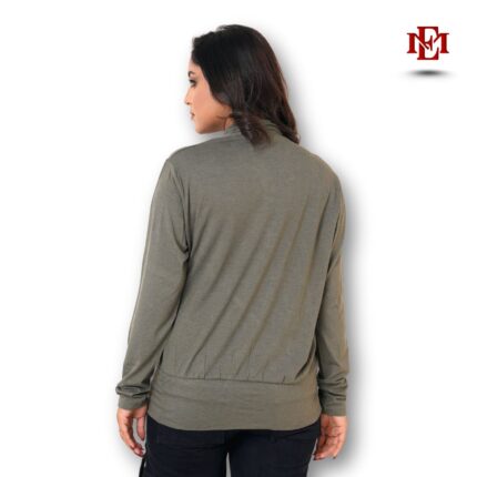 Women’s Stylish Cross Wrap Long Sleeve Top | Olive Green