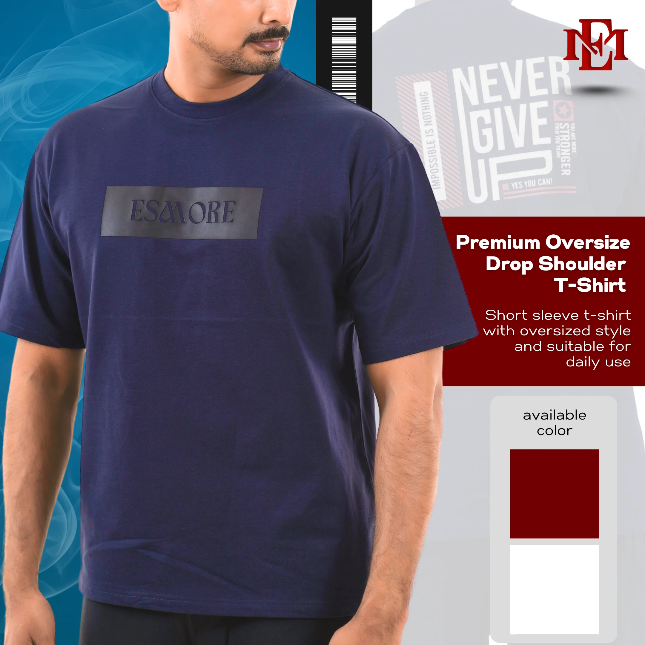 The Esmore Premium Drop Shoulder T-Shirt embodies the brand’s bold, classy, and urban lifestyle, giving you a confident look that never goes out of style.